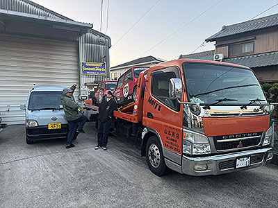 で ん で ん む し 達 を 積 車 に 積 み 込 み ま す