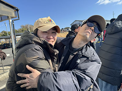 何 故 か レ ー ス 中 に 抱 き 合 う 2 人