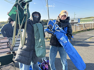 風 が 強 い の で テ ン ト 設 営 は 大 変 で し た