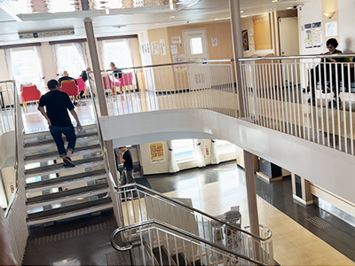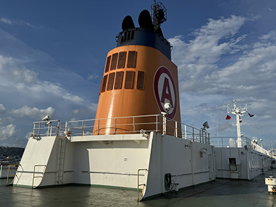 こ こ は マ ル エ ー フ ェ リ ー の デ ッ キ で す