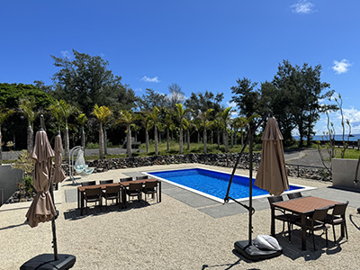隣 に は ス テ キ な プ ー ル 付 レ ス ト ラ ン が 建 っ て い ま す