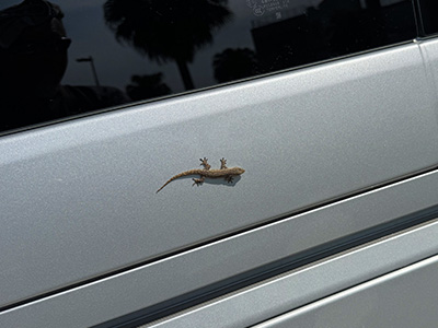 車 中 に ヤ モ リ が 居 た の で 外 に 出 し て あ げ ま し た ♪